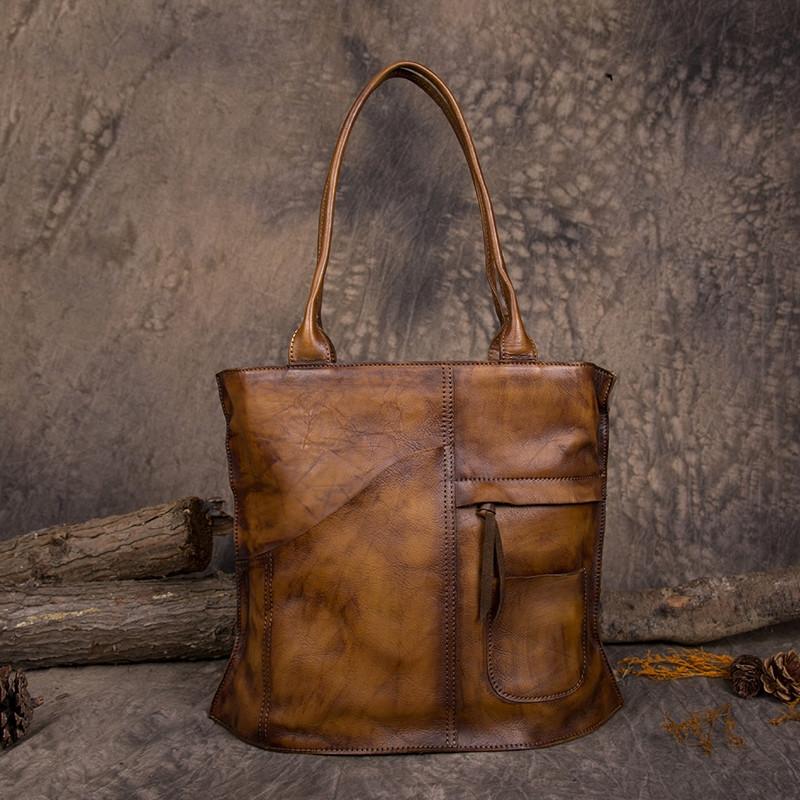 Handmade Vegetable Tanned Leather Tote Bag